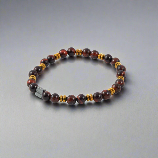Red tiger eye with yellow hematite Kuffs Mens Bracelet