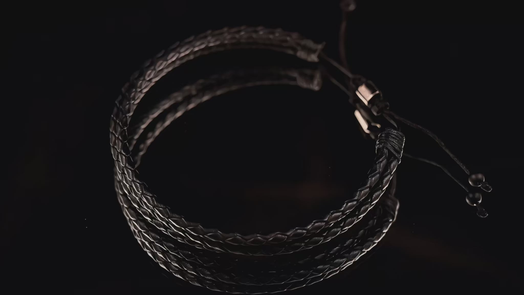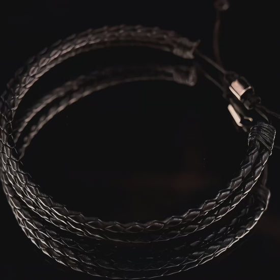 A simple black leather three rows mens Kuffs Bracelet Experience the comfort and flexibility with this three-row Kuffs bracelet made with high-quality black leather. Perfect for any outfit and occasion, this bracelet is a must-have for men who value style and durability.